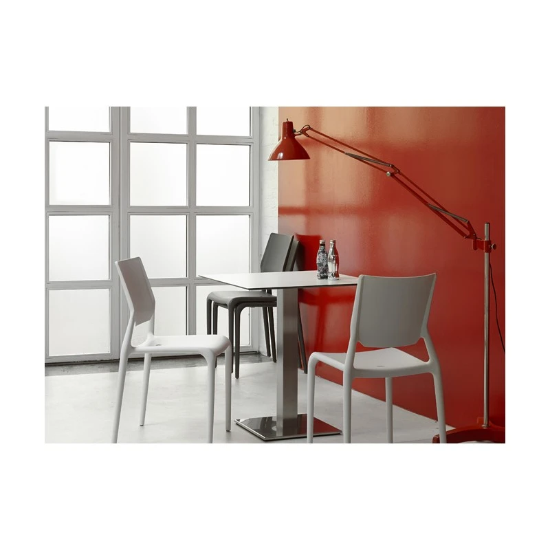 En technopolymere recyclable moulé et renforcé de fibre de verre pour une chaise à la fois très résistante et légère. SIRIO est très confortable est facile à empiler
