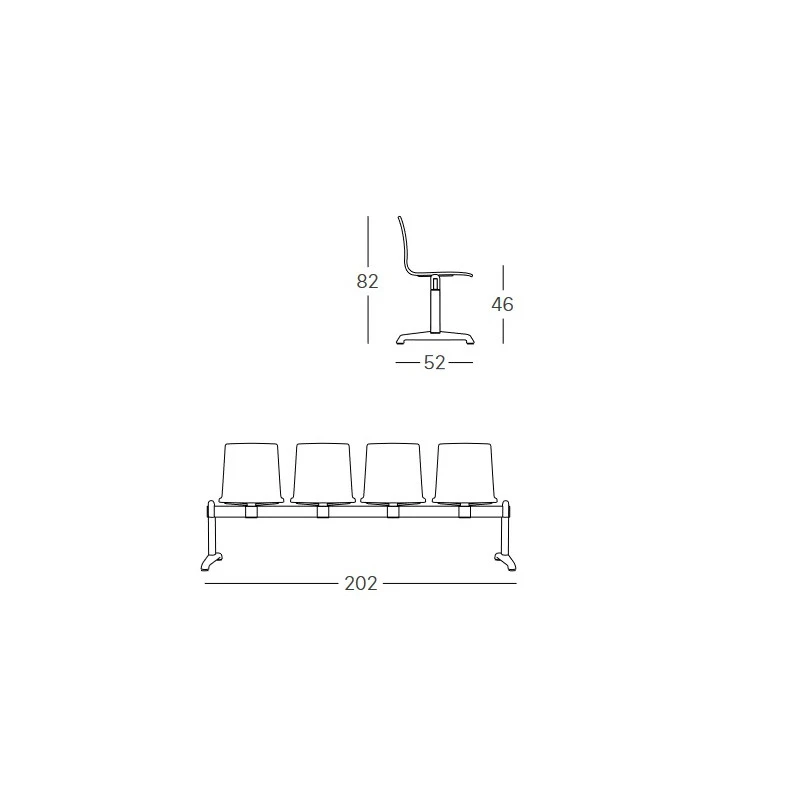 Banc de salle d’attente ignifugé Bench Alice 4 chaises – Scab design