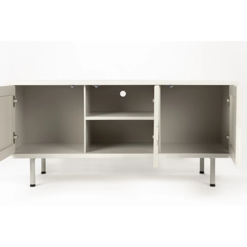 - Rangement optimisé : ses trois portes offrent un accès à quatre niches idéales pour organiser vaisselle, objets déco ou appareils électroniques.