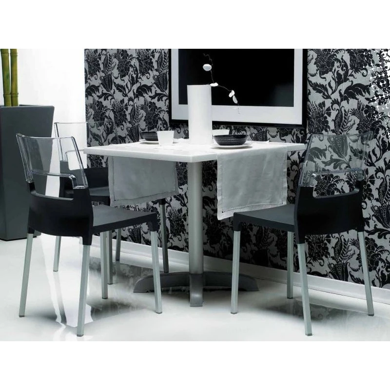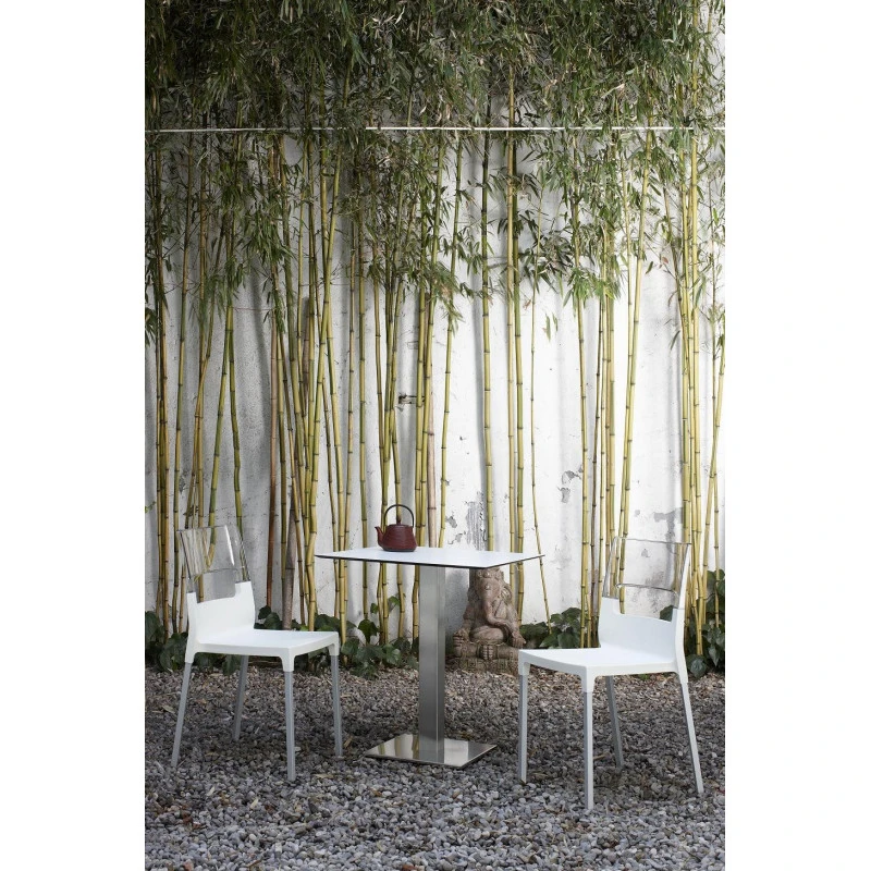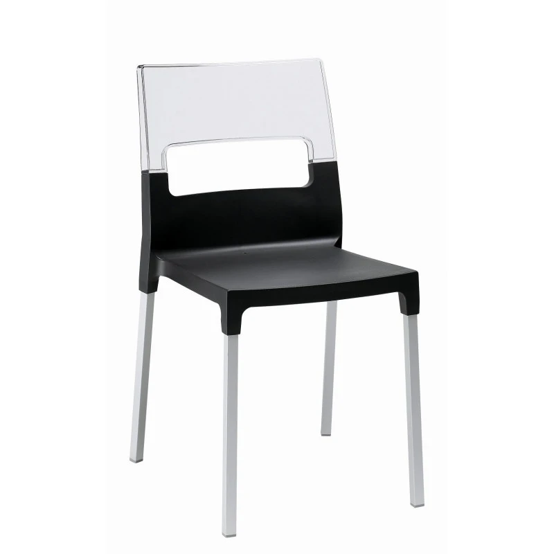 Assise en polypropylène renforcé de fibre de verre. Dossier en polycarbonate transparent.