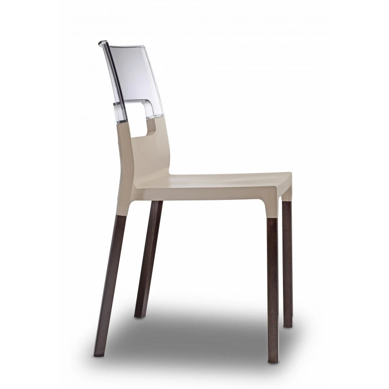 Pieds en bois de hêtre et assise super atypique avec une partie opaque et une partie translucide.