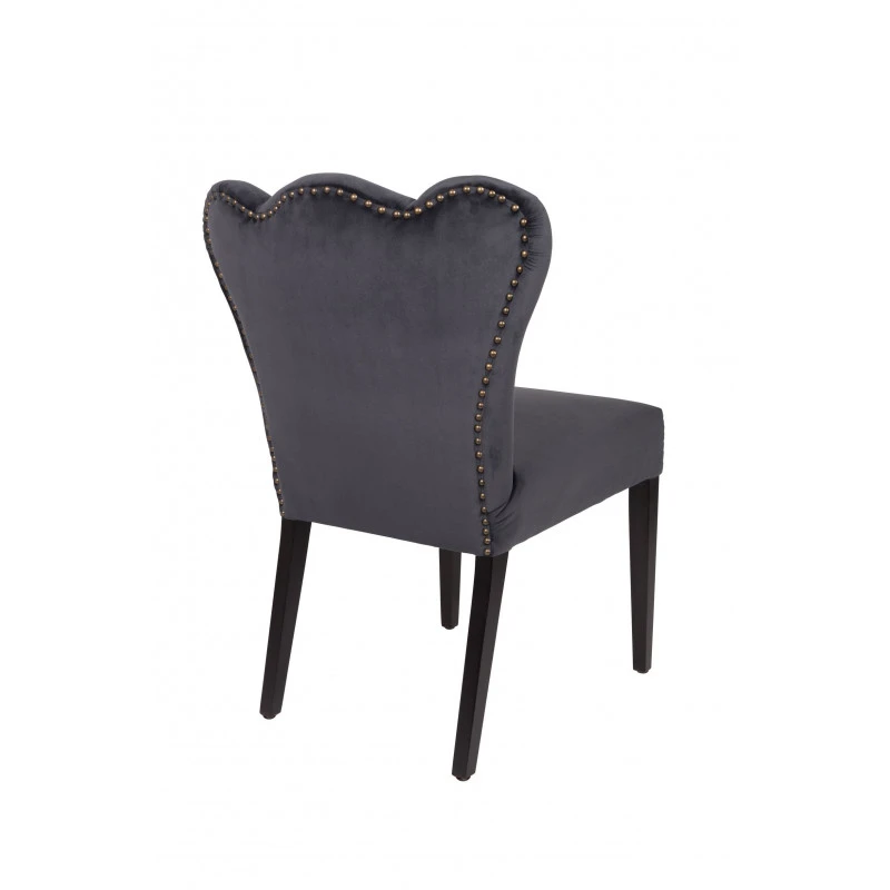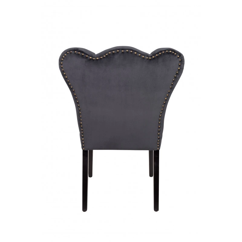 Une fois les chaises rangées sous la table, vous pourrez admirez la finition cloutée de couleur laiton sur le dos de la chaise ce qui accentuera le coté baroque et chic de cette chaise.
