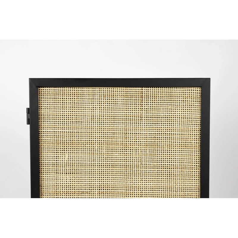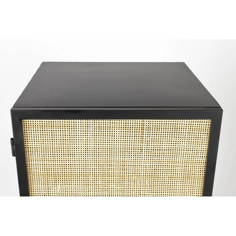 Ce buffet bois est composé de pieds en métal sur lequel prend place le meuble en bois MDF avec deux portes en finition rotin naturel.