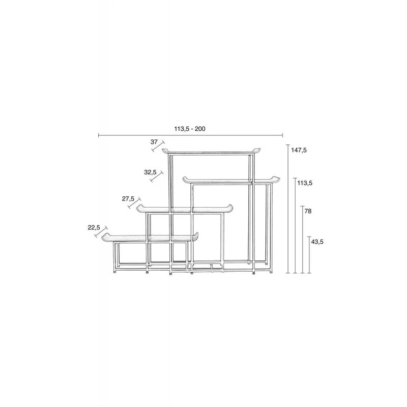 Dimensions 4ème étagère : 113,5x37x143,5-147,5 cm (LxPxH)