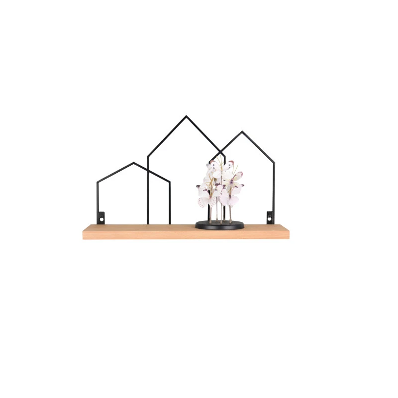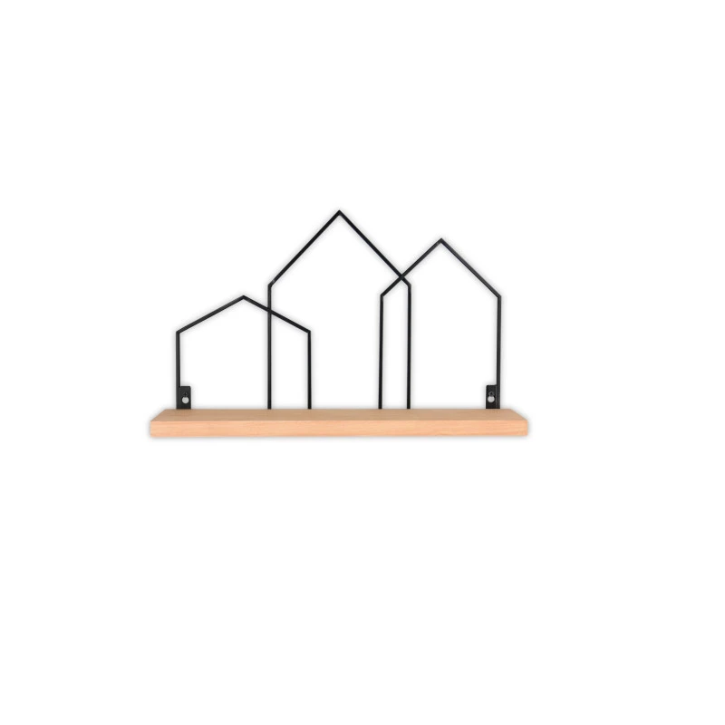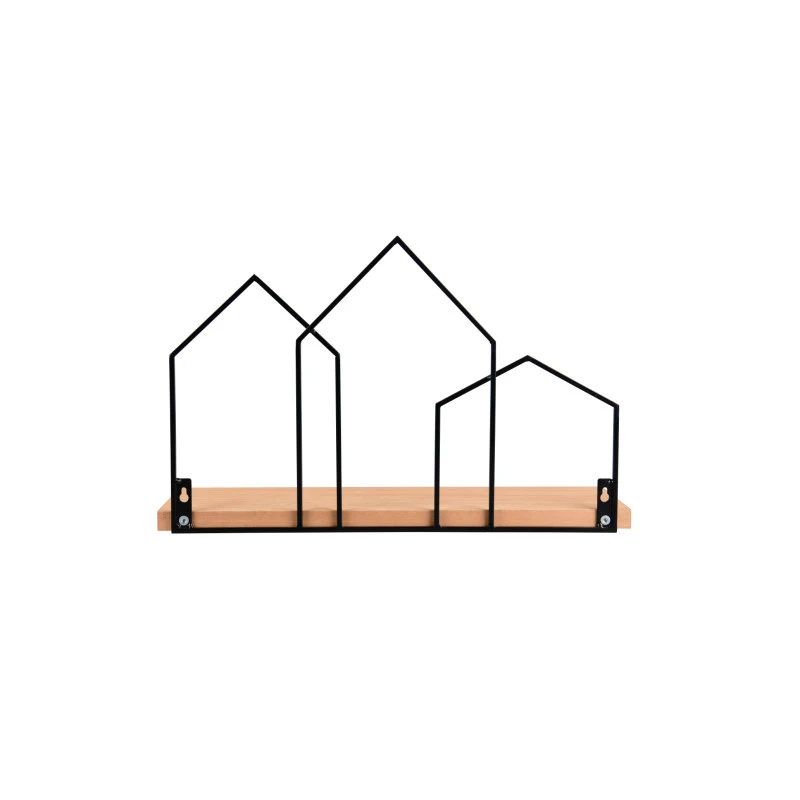 - Matériaux : Étagère en bois et structure décorative en métal noir.