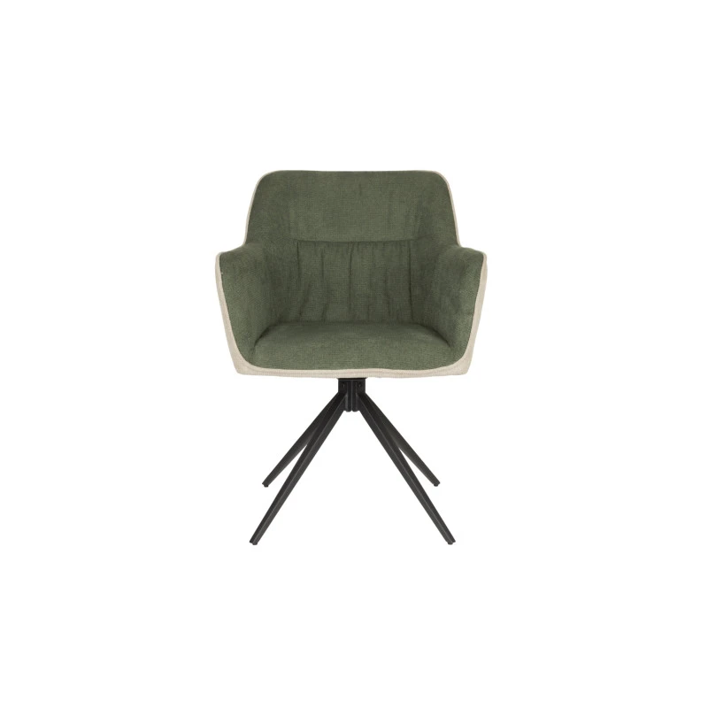 Le fauteuil Daley se distingue par son design élégant et son confort inégalé. Avec son revêtement en tissu bi-couleur, il s’intègre parfaitement dans un intérieur vintage ou contemporain. La coque en polyester enveloppe le corps, tandis que les pieds en métal noir apportent une stabilité solide et une touche industrielle chic.