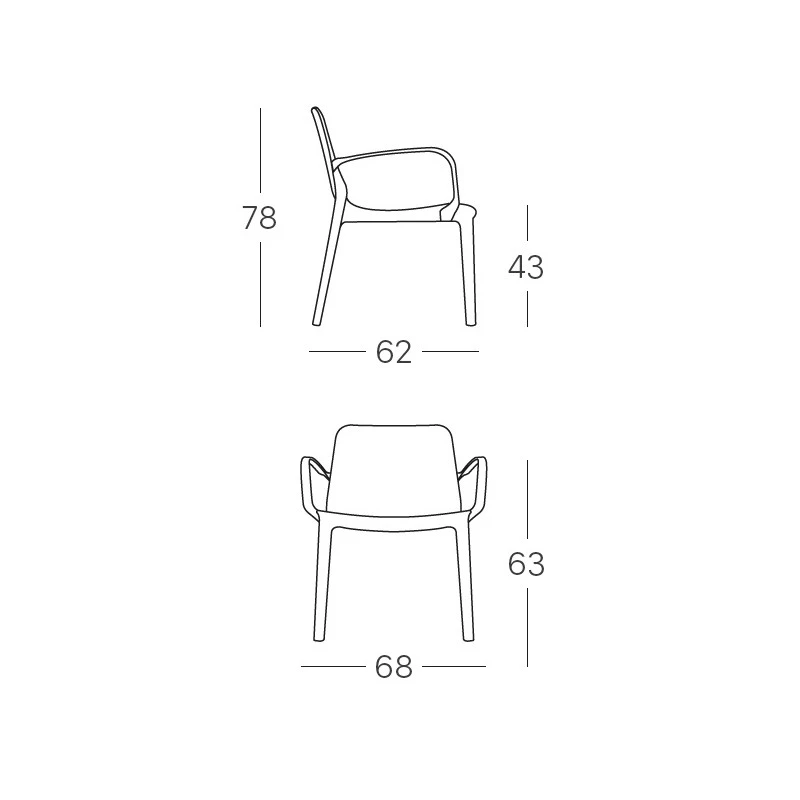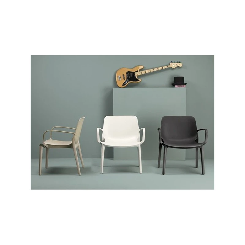 Vous trouverez aussi le modèle fauteuil classique, et le modèle sans accoudoirs, en chaise Ginevra simple