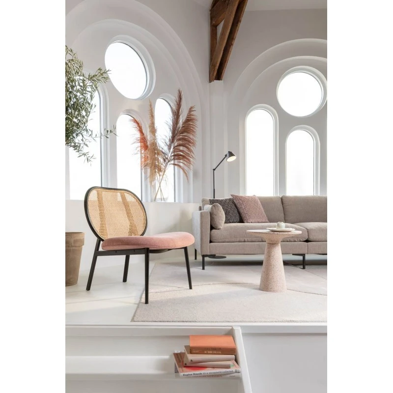 Fauteuil lounge SPIKE en canne de rotin et assise en tissu – Zuiver