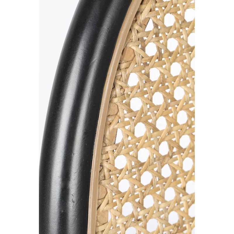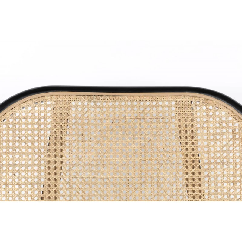Assise 100% polyester et dossier en rotin dans une structure en bois de hêtre massif laqué.