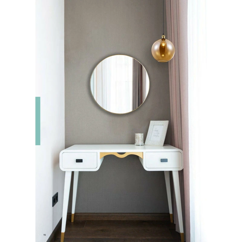Le miroir rond Esra se placera sur un mur grâce à ses fixations. Doté d’un cadre en métal de couleur or ou noir, ce miroir 50 cm de diamètre donnera du style et de la modernité à une pièce d’intérieur, comme une chambre à coucher ou bien un salon.