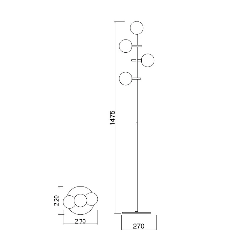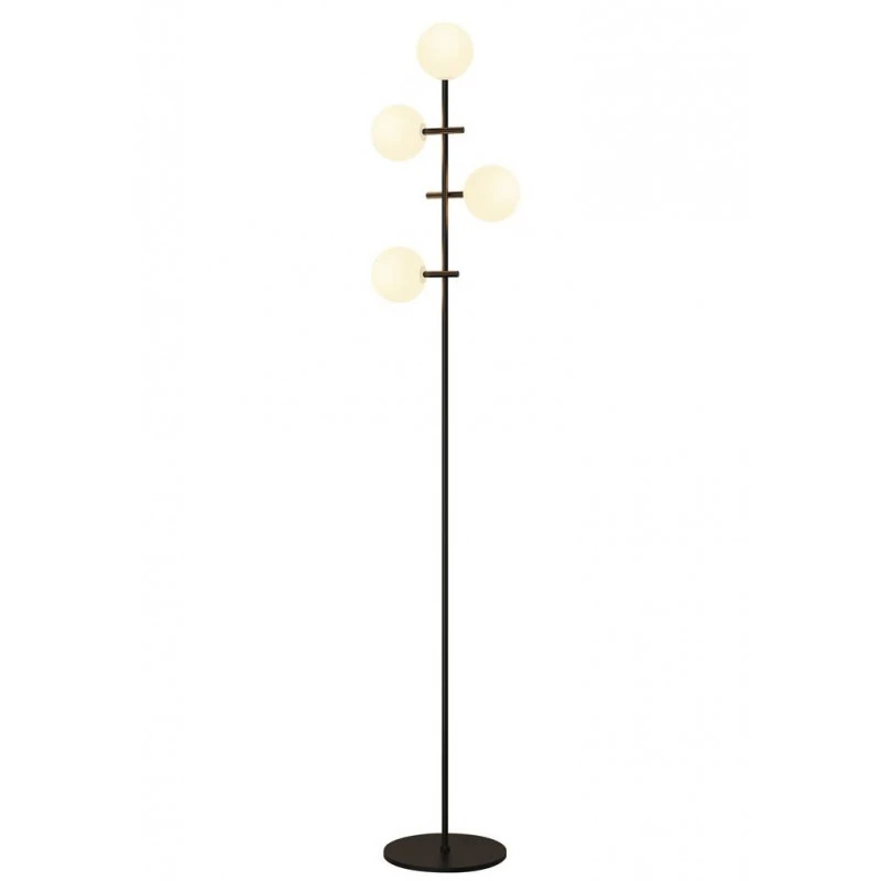 Le lampadaire Cellar dispose de barres métalliques et de boule de verre blanc opale permettant de diffuser une belle lumière.