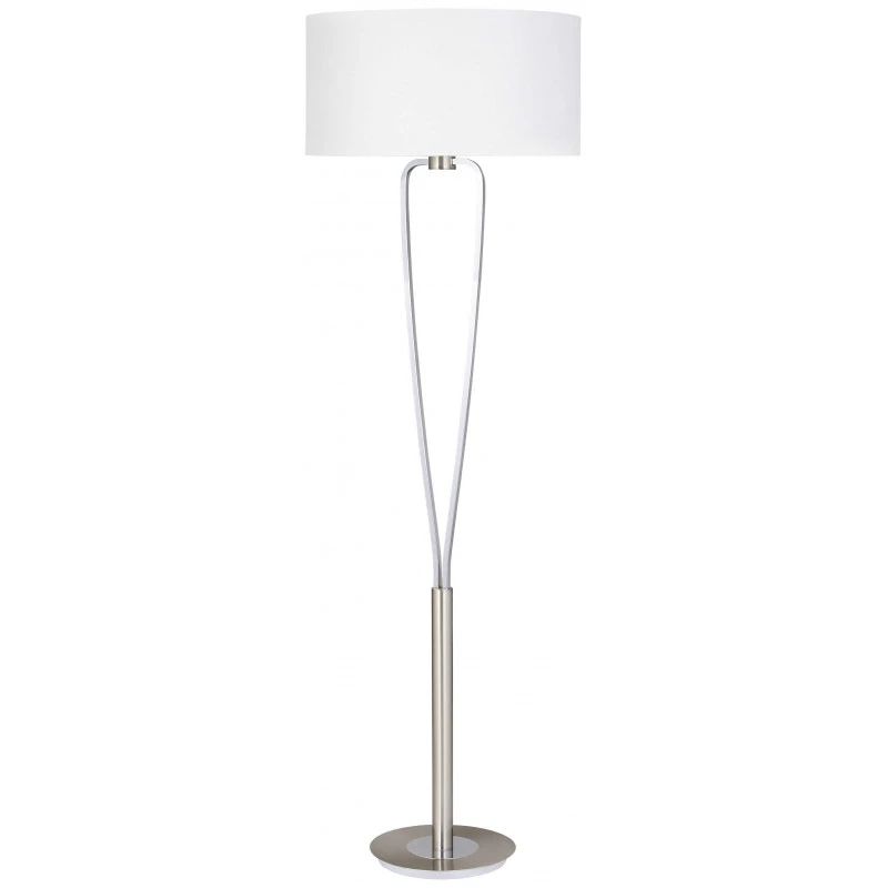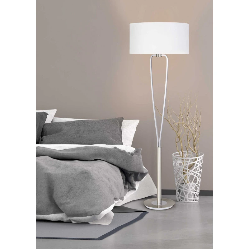 L’abat-jour de ce lampadaire Paris II est en tissu blanc.