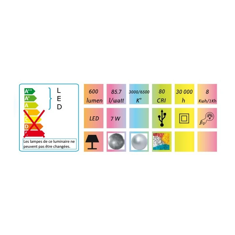 Grâce à son interrupteur tactile vous allez pouvoir faire varier la température de la lumière (lumière chaude ou froide) Il y a 5 modes pour cela.