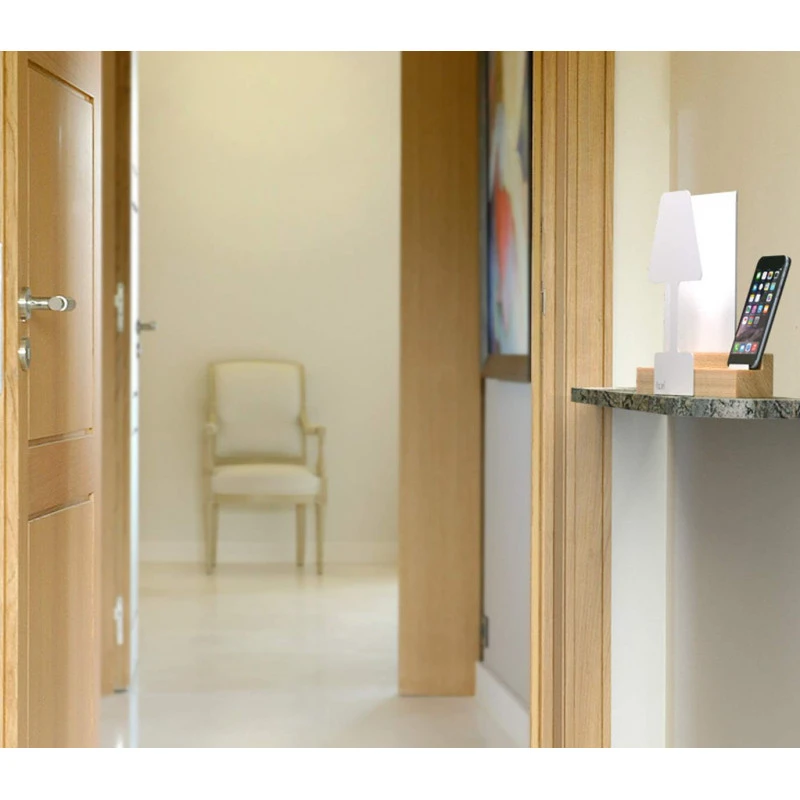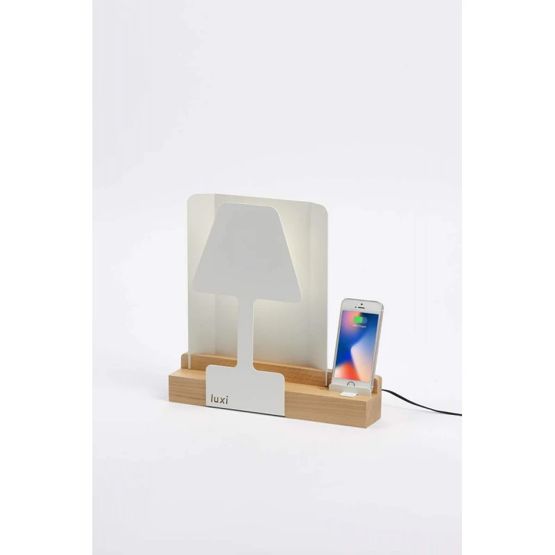 Vous disposerez aussi d’un socle pour poser votre smartphone. Puis il suffira de mettre votre cable de votre téléphone au port USB. Et oui, la lampe s’occupe du chargement de votre téléphone.