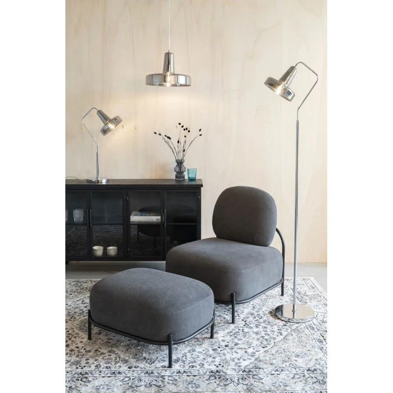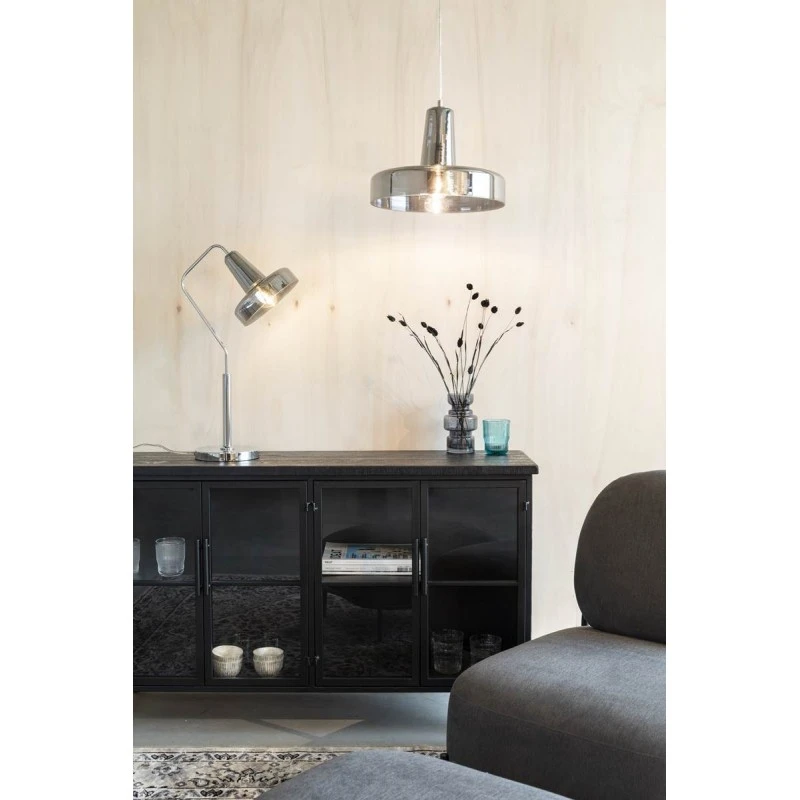 Abat-jour en verre non trempé de couleur fumée avec corps en fer.