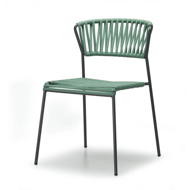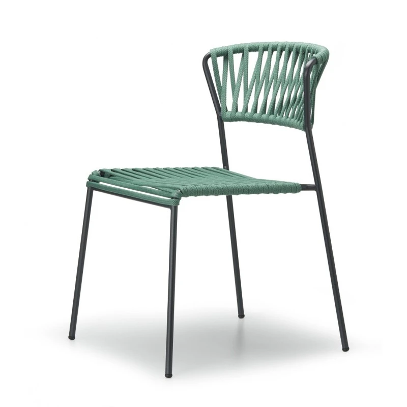 Chaise Lisa Filo avec cadre en métal anthracite et corde de couleur noir ou vert.
