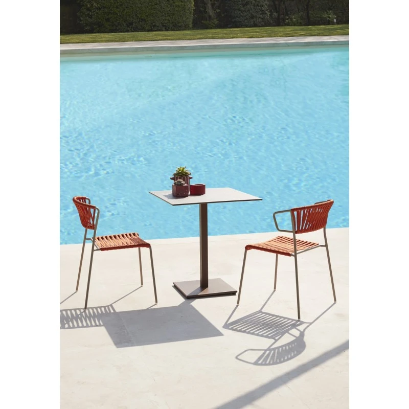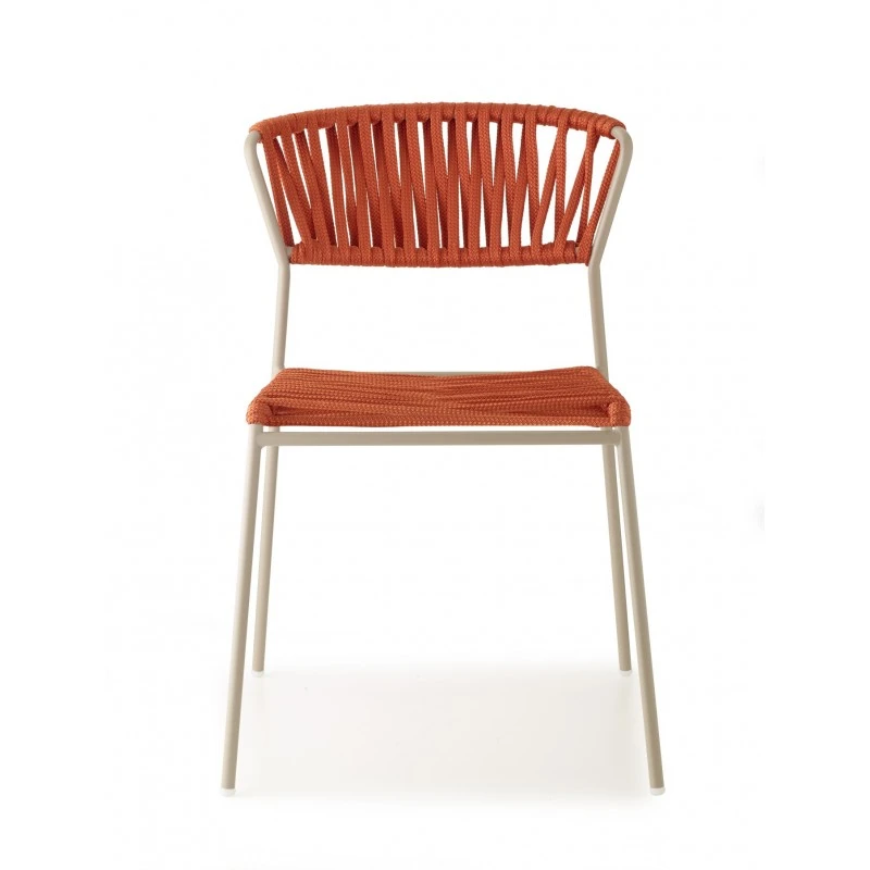 Chaise Lisa Filo avec cadre en métal beige et corde de couleur beige ou orange.