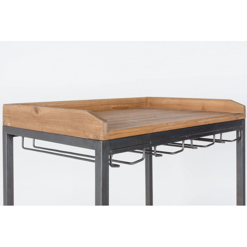 Ce meuble authentique bar à vin par ses matériaux utilisés à savoir le bois et métal en feront un objet déco et utile pour tous les salons et salle à manger. Il se compose d’une multitude de rangements différents comme les deux tiroirs en bois avec porte étiquette et poignée en métal, un rangement pour 15 bouteilles de vins avec une dimension de 9×9 cm par casier, un plateau et au dessus un rack permettant de ranger des verres à pieds.