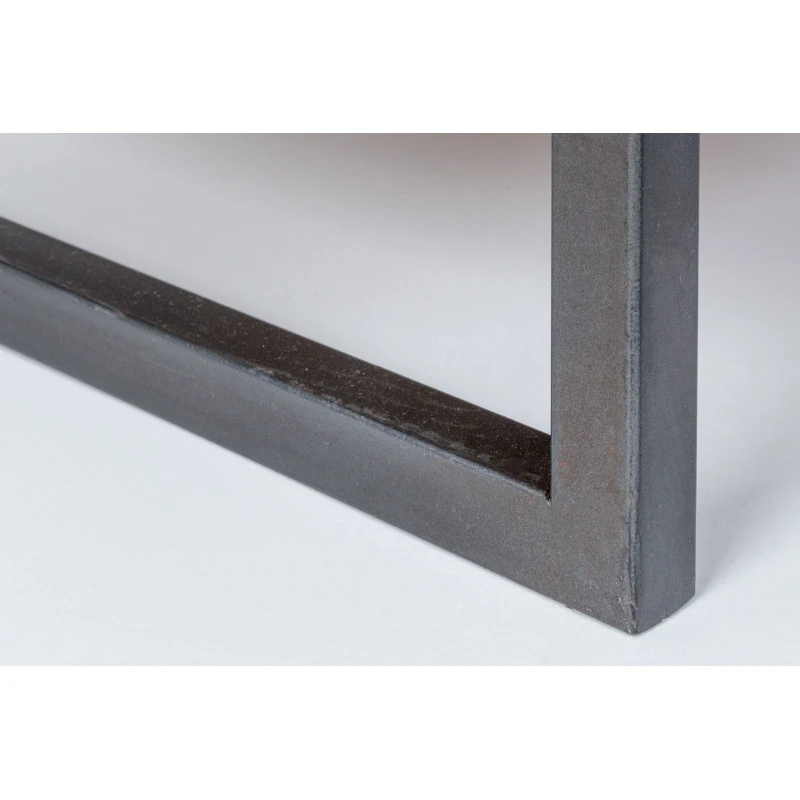 Le meuble mesure 112 cm pour 56 cm de large. Son cadre est en métal de couleur gris et tout le reste est en bois.