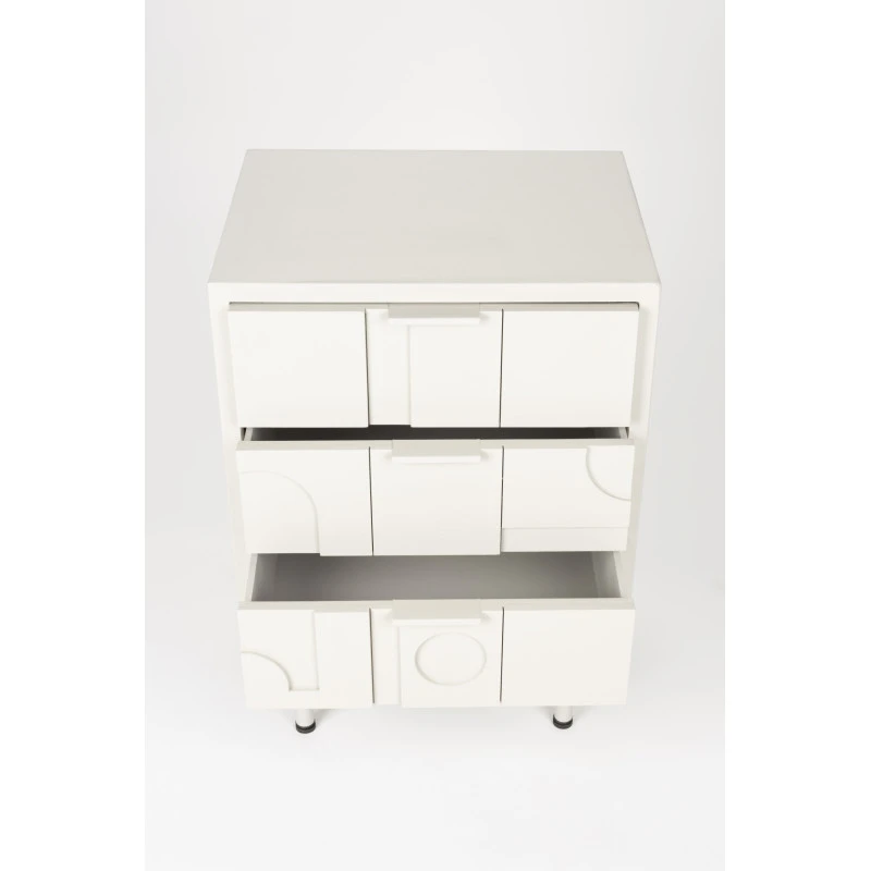 Le petit meuble Funk est la solution idéale pour ceux qui souhaitent un meuble pratique, esthétique avec ses motifs géométriques et polyvalent. Que vous l’utilisiez comme table de chevet ou petite commode, il offre un rangement suffisant tout en restant compact. En plus de sa fonctionnalité, il peut être combiné avec les autres meubles de la collection Funk, pour un intérieur harmonieux et coordonné.