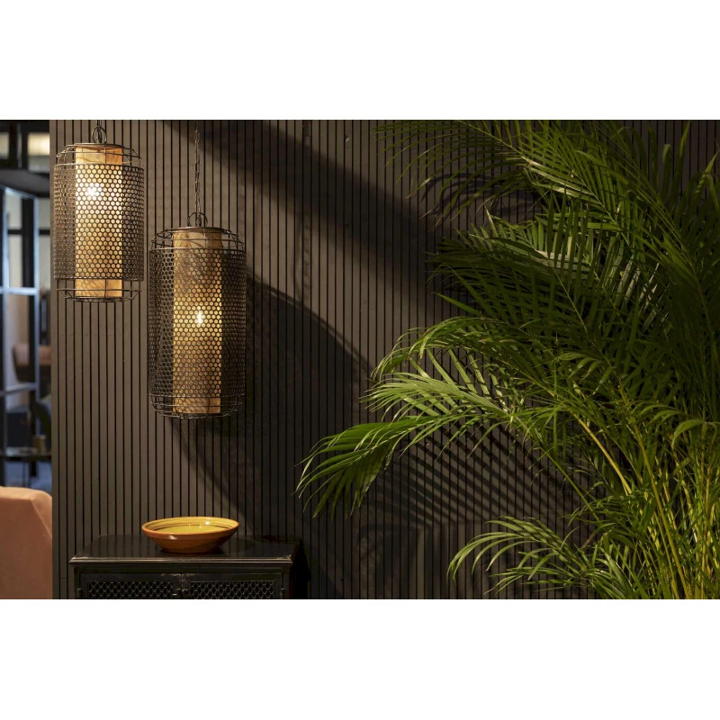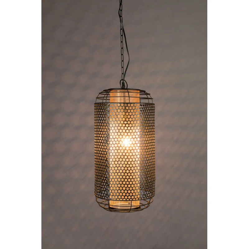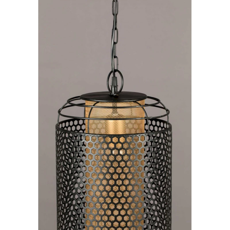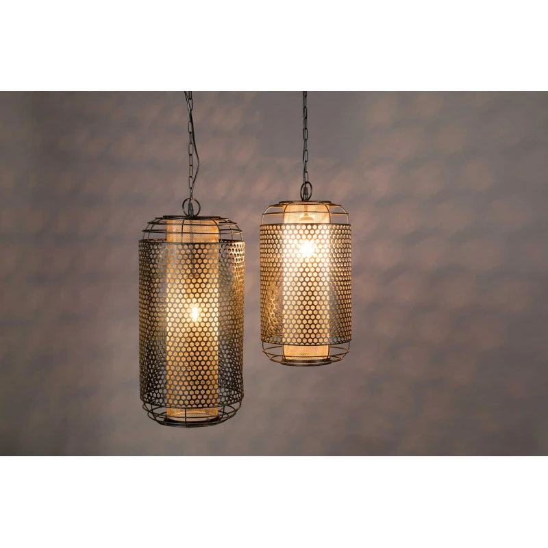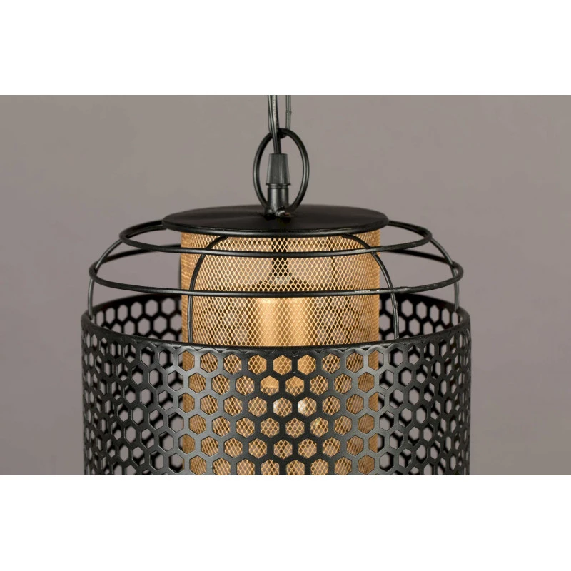 La suspension Archer Dutchbone est un luminaire très design aux formes vintages avec sa double paroi tubulaire et perforée en métal. En effet un abat-jour en laiton trouve place avec une cage en métal noir qui vient recouvrir l’abat-jour. L’ensemble est particulièrement réussi et sera maintenu par une élégante chaine en métal.