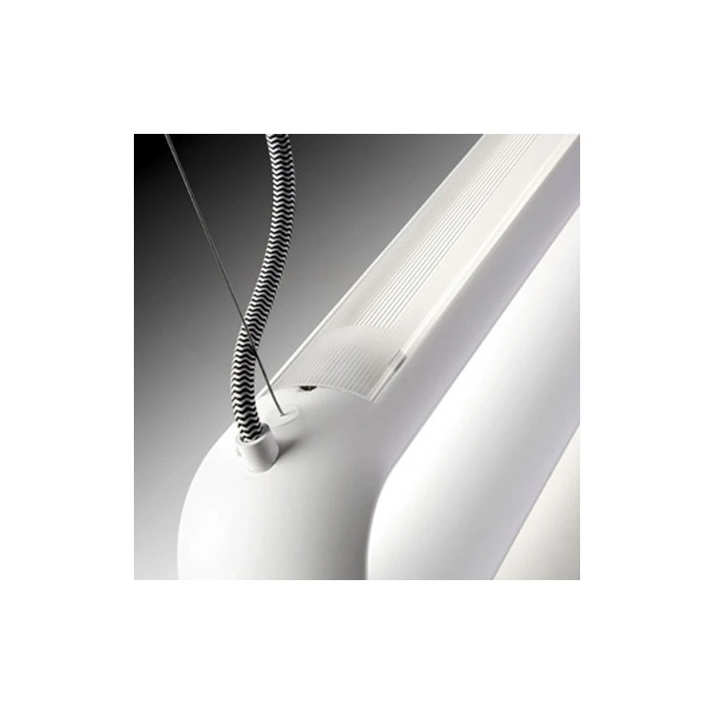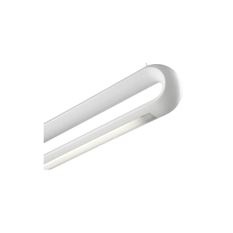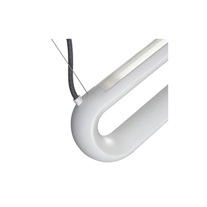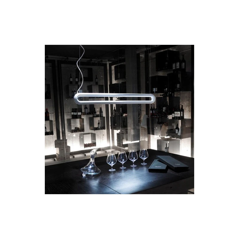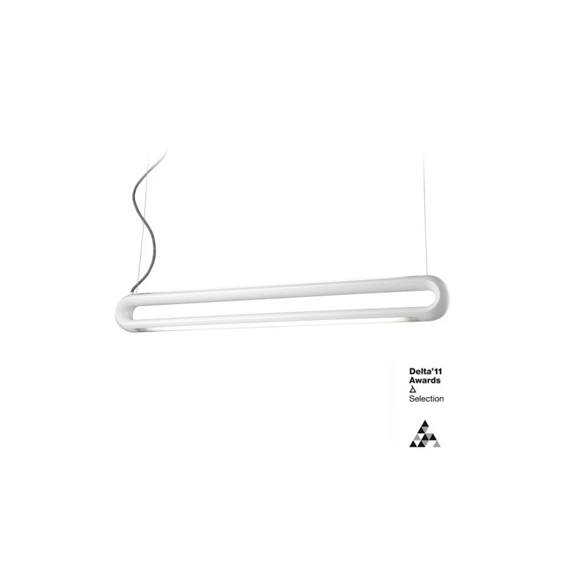 Fabriquée en polyuréthane et de couleur blanche, la suspension Siluet de Leds C4 ne laissera personne indifférent. D’une longueur de 105 cm, l’éclairage est très large et va permettre d’éclairer une salle à manger, cuisine ou salon. Le diffuseur en polycarbonate abrite deux tubes T5 de 39W qui vont produire une lumière chaude. La direction de la luminosité se fera vers le haut et le bas.