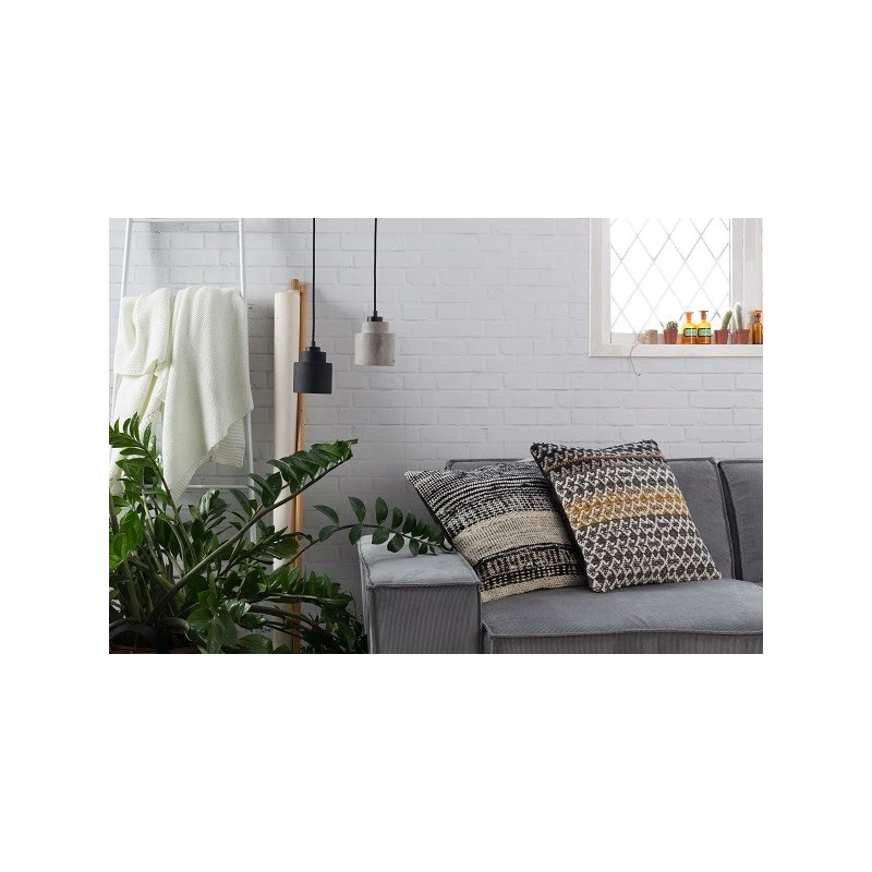 Une suspension design originale avec son câble tissé et son abat-jour en ciment pour un fini industriel.