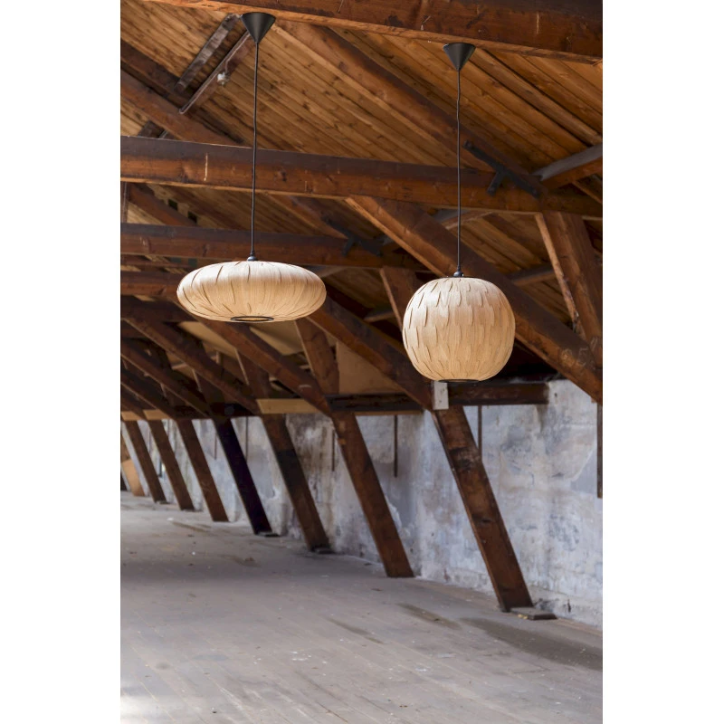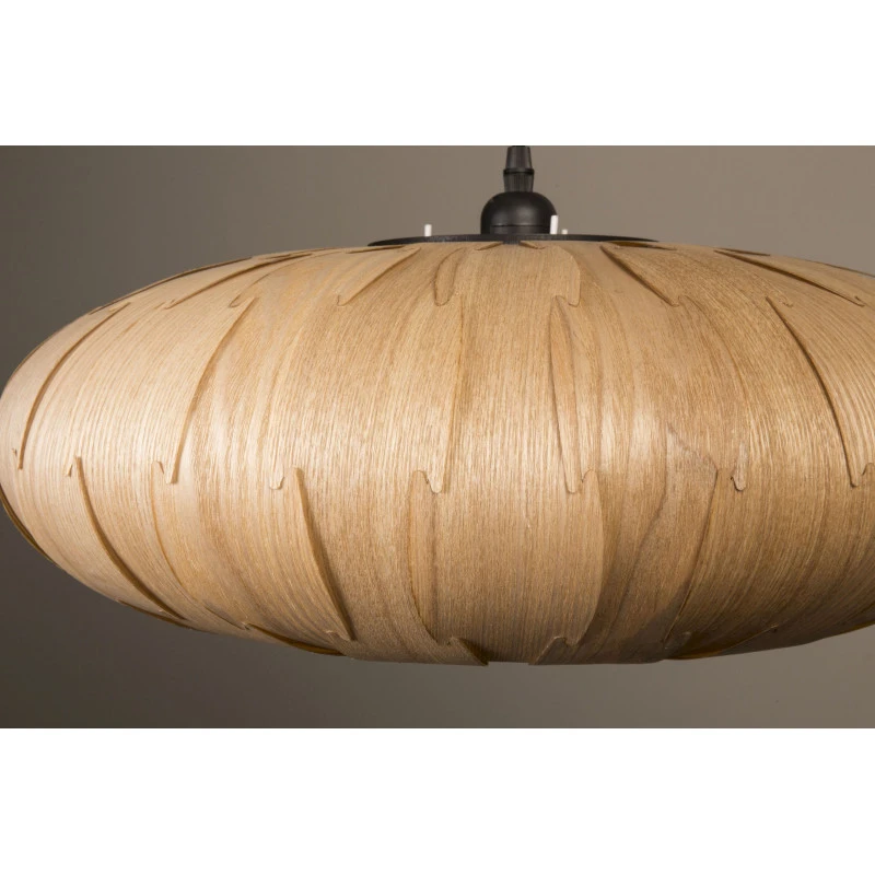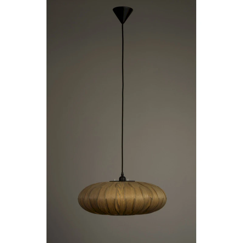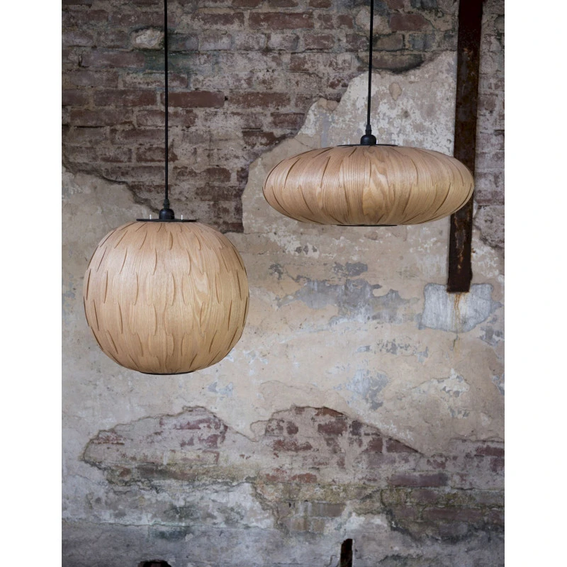 Cette suspension Bond Dutchbone est fabriquée à l’aide de lamelles avec un placage en frêne qui lui donne cet aspect ovale. L’abat jour mesure 18,5 cm de hauteur pour 50 cm de diamètre.