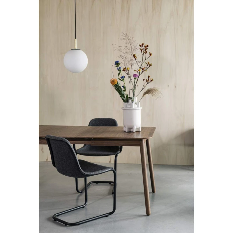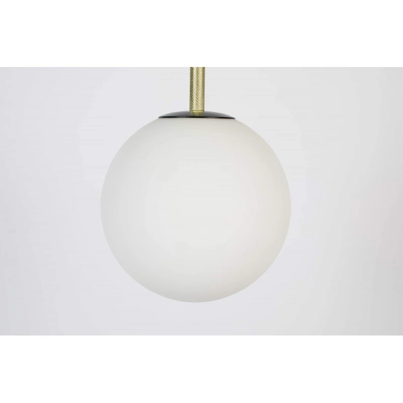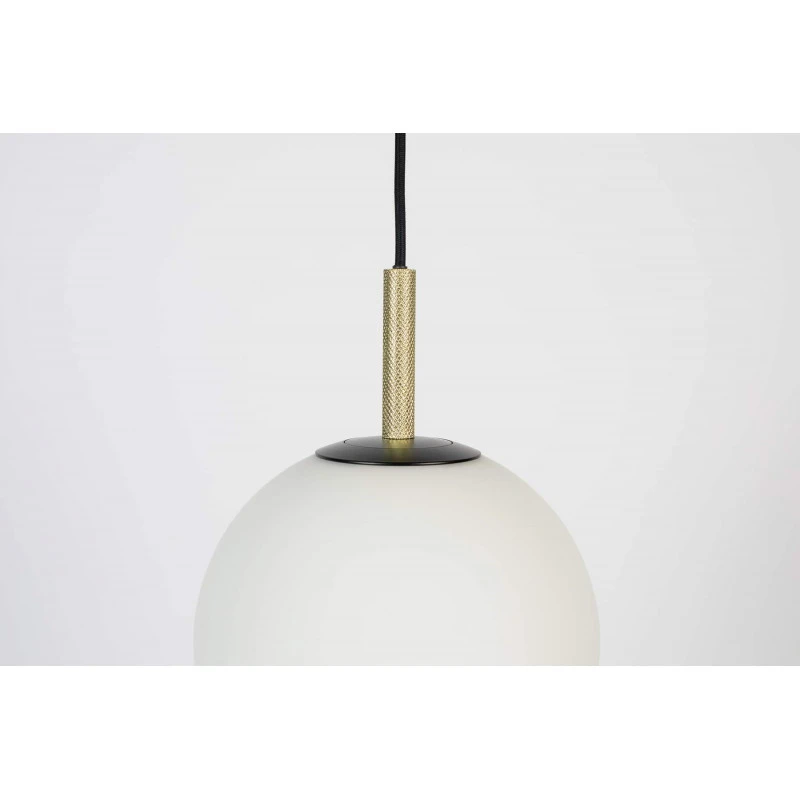 Le mélange de l’abat jour en verre opale et du métal donne un côté très chic à cette suspension