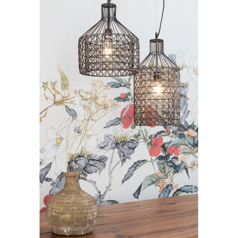 La lampe de plafond Jim est une suspension au style vintage et industrielle avec son abat-jour grillagé en métal. L’éclairage est confié à une ampoule E27 qui donnera une belle lumière à la pièce à équiper grâce aux formes géométriques de l’abat-jour.