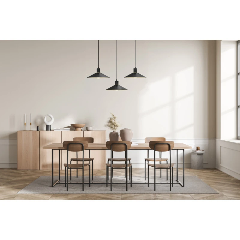 Grâce à son association de métal noir et de formes épurées, cette suspension s’intègre parfaitement dans différents styles de décoration : industriel ou contemporain. Ses trois sources lumineuses apportent une lumière homogène et chaleureuse, idéale pour un éclairage principal.