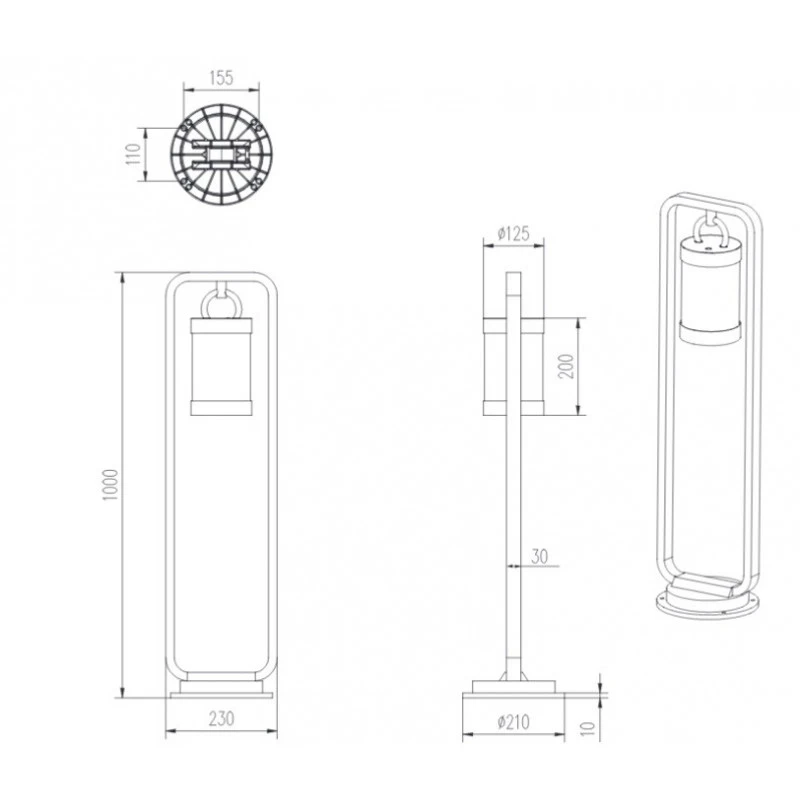 Ce potelet de 100 cm de haut est constitué d’un cadre en métal au style moderne avec ses angles arrondies. Le diffuseur est en plastique transparent.
