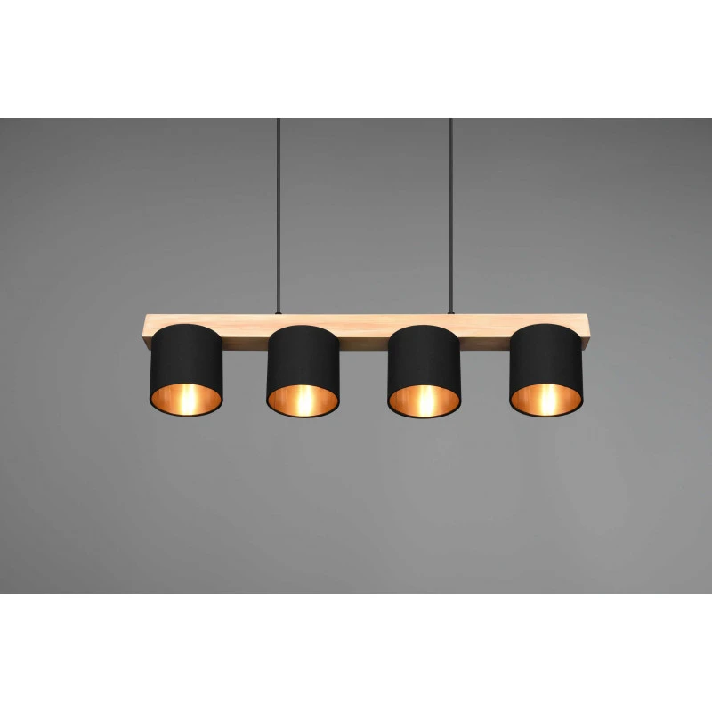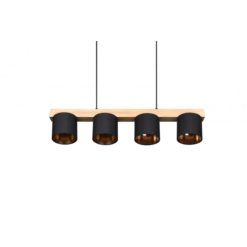 Suspension bois et tissu 4 lampes