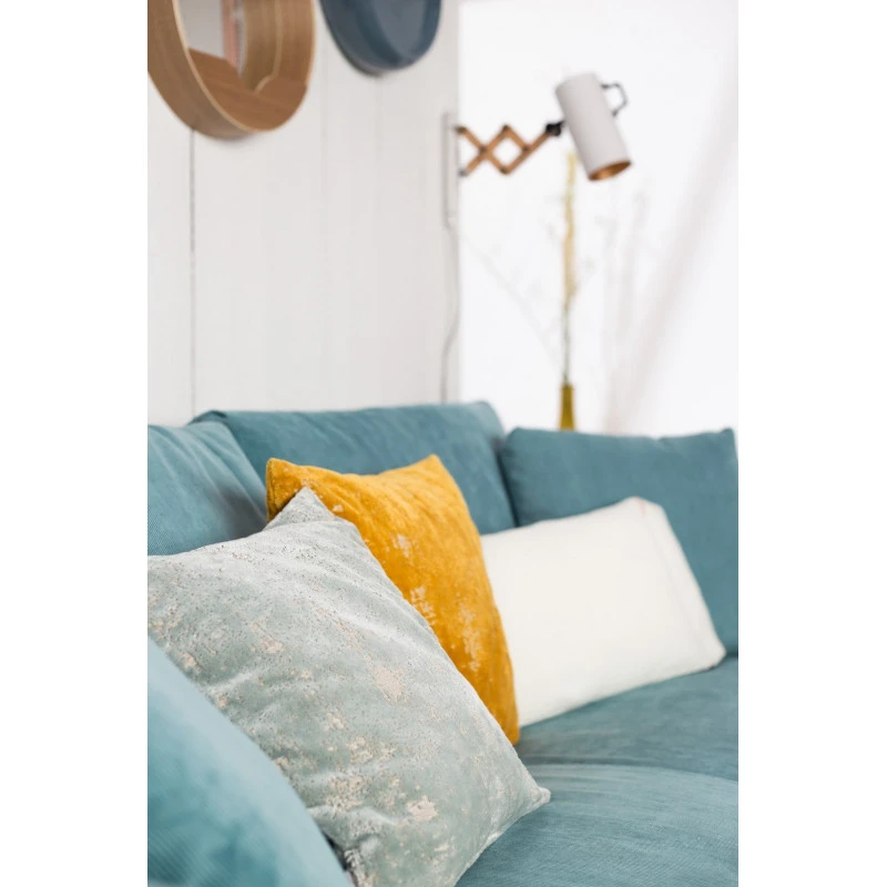 Bleu vintage, jaune, vert olive, bleu nuit, ce coussin design propose plusieurs coloris tendances à mixer à volonté.