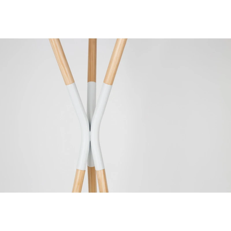 Pour cette patère (porte-manteau) il y a une forte ressemblance à l’ancien jeu de Mikado . Nous avons donné ce jeu d’agilité asiatique une sensation scandinave avec l’utilisation du bois blond et blanc ou le détail gris foncé .
